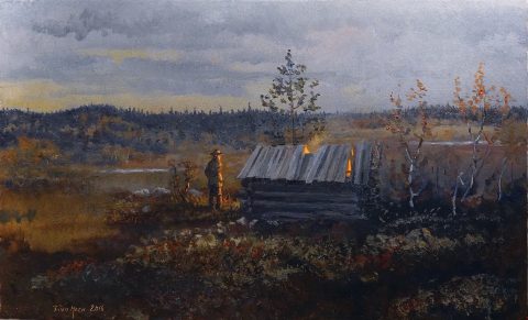 De fleste motivene finner Finn når han er ute på tur, slik som denne septemberkvelden. Bildet har fått tittelen: «Septemberkveld i ødemarken.»