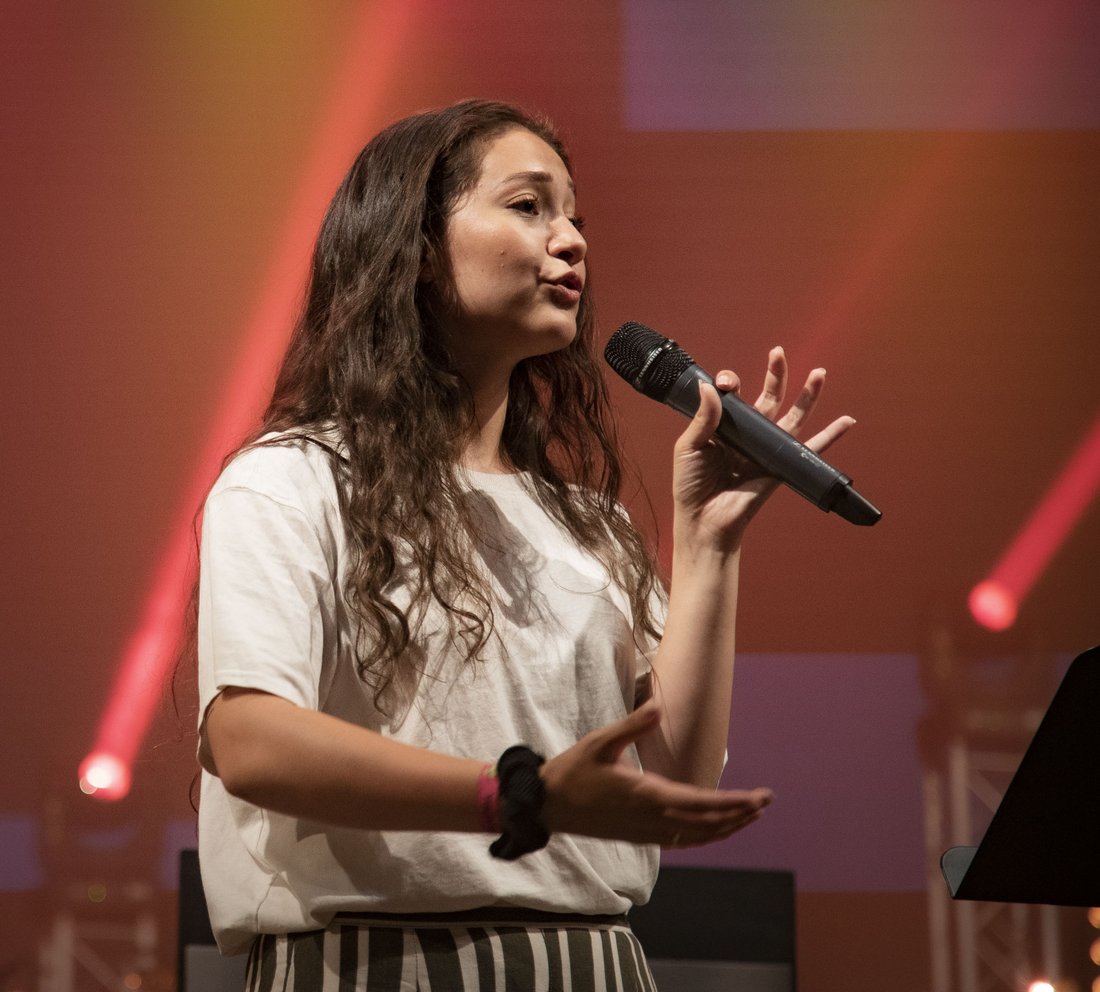 Etter å ha vært med å lede en Youth Camp sammen med sin mann Simon fra onsdag til lørdag ettermiddag, leverte Zoé Kristiansen (21) budskapet på selve åpningsmøte for Stevnet denne sommeren. Samtidig som hun er ungdomsleder i OKS i Romerikskirken, studerer hun også ved Høyskolen for Teologi og Ledelse. I talen sin trakk hun frem det hun kalte Guds Nådepenal, som ikke kun består av et viskelær, men en linjal og blyantspisser som også bygger fremtiden.