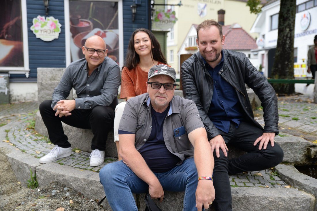 Rune Edvardsen, Kai Johansen, Zoé Kristiansen og Hans Martin Skagestad. Bildet er fra Tabernakelet i Bergen som misjonsteamet fra Troens Bevis besøkte i september.