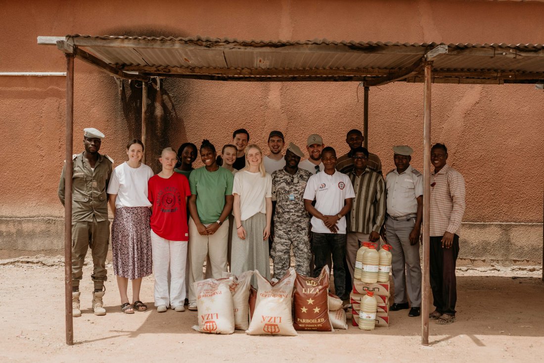 Første kampanjedag ble spesielt spennende. Først fikk teamet være med på en samling med feltleder Samuel Yaldia, som ikke skjulte sin begeistring over de unges besøk fra Norge: