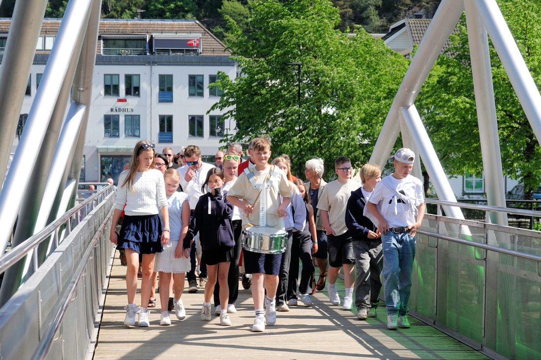 Etter gudstjenesten gikk folk i tog gjennom sentrum og bort til elva der det var kirkekaffe.