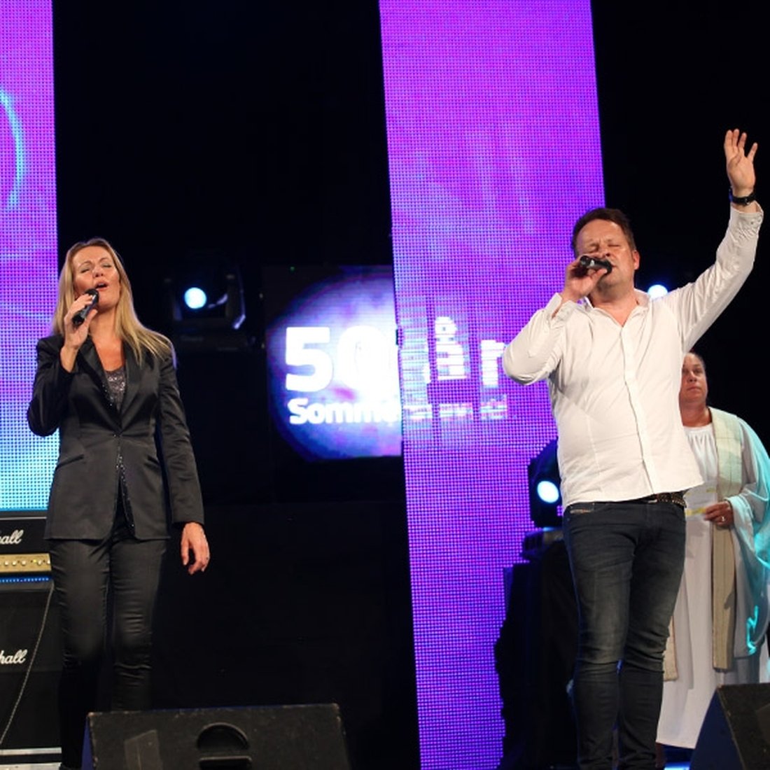 Monika og Håvard leder lovsangen under Stevnet