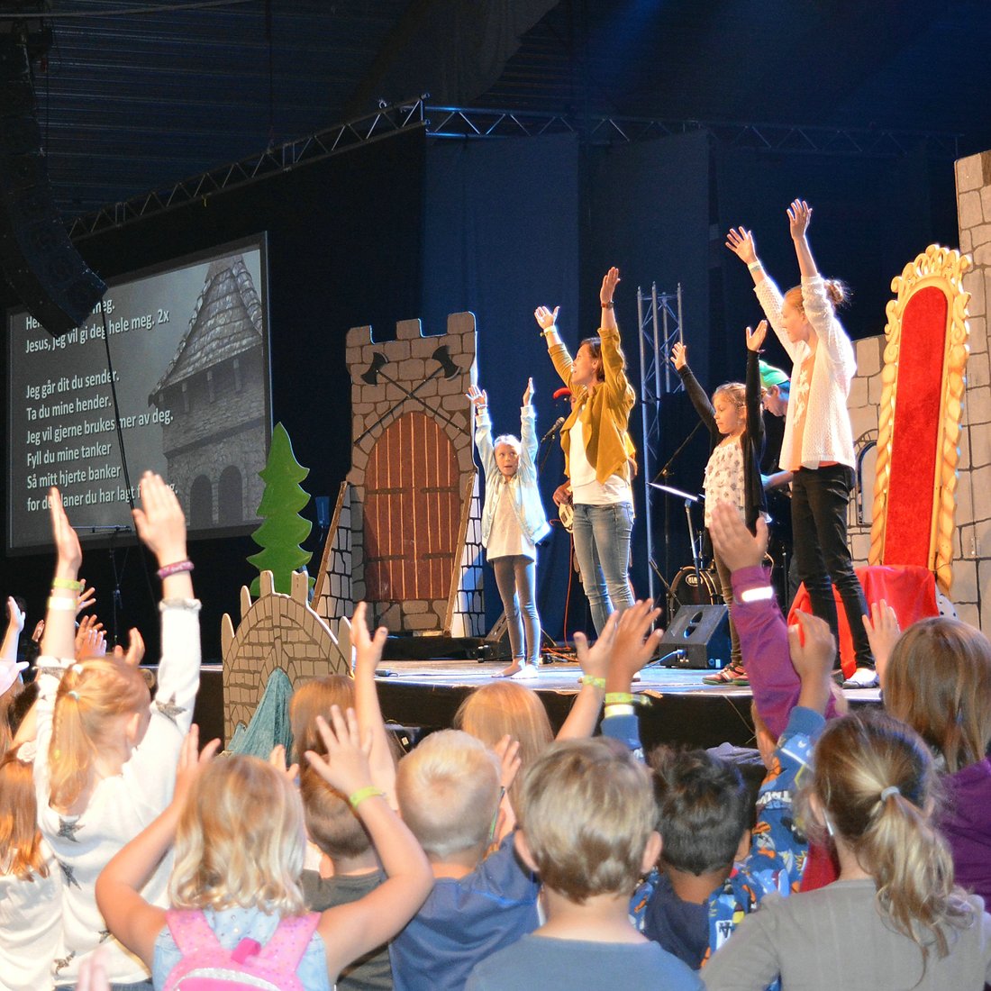 – Som tidligere har vi 5 nye skuespill også til dette stevnet. Selv ser jeg på det som fem prekener. Først får barna oppleve en historie fra Lykkeborg, så kommer dagens bibelhistorie som er en parallell til det som skjer i Lykkeborg. Hovedpoengene fra historien blir oppsummert på slutten av møtet. Senere på dagen samtaler gruppelederne med barna og forsterker temaet som ble tatt opp.