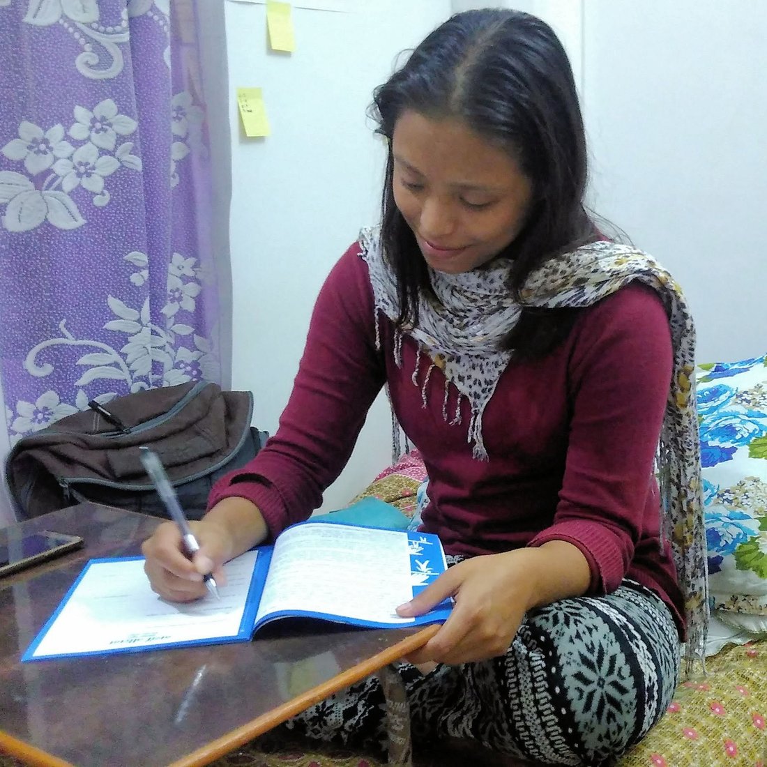 Faren min sluttet dermed å støtte meg og studiene mine. Men jeg har akseptert denne utfordringen og nå vever jeg ul-lluer, votter og gensere for å betale for husleie og studiekostnadene. Jeg har funnet en stor glede i troen på Jesus som hverken mine foreldre eller slektninger kunne gi meg.