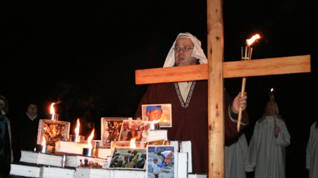 Det var med stor glede og takknemlighet at Helge Flatøy mottok en ny sjekk på 100 000 kroner fra Lyngdal Misjonsmenighet i januar. Det var resultatet av billettsalg og gaver som kom inn under 13 forestillinger av julespillet ”Veien til Betlehem” i desember. Forestillingene er nå blitt en årlig tradisjon første helga i advent nede ved elva i Lyngdal i lysspillet fra hundrevis av fakler og leirbål.  Julespillet settes opp av Lyngdal Misjonsmenighet og engasjerer hele menigheten på tvers av generasjonene, forteller Elsbeth Sørensen som er gift med pastor i menigheten, Sten Sørensen. Selv var hun med og sydde 13 nye drakter til barn som var med i spillet i desember.
